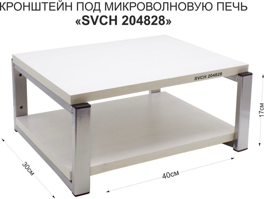 Кронштейн для микроволновки, 17см под хром "SVCH 204828" под микроволновую печь, полка, 30х40, сосна