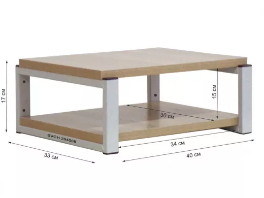 - Каркас изделия выполнен из высокопрочного металла. Полка изготовлена из ламинированного ДСП