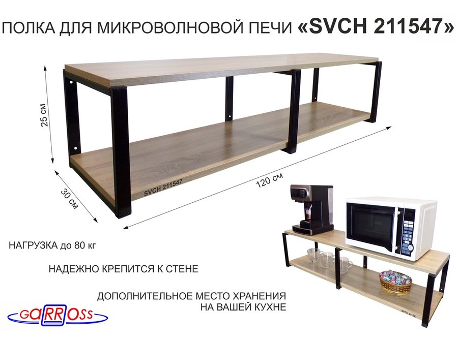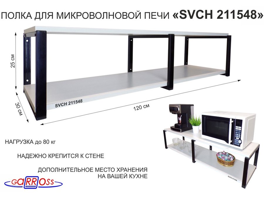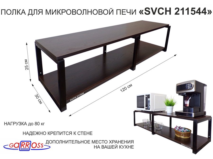 Полки для микроволновок "SVCH" кронштейны для СВЧ печей, высота 27см, 120х30см, 2 уровня