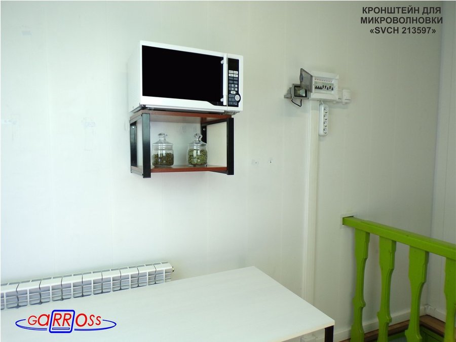 Кронштейн для микроволновки, 27см черный "SVCH 213597" под микроволновую печь, полка 30х40, орех