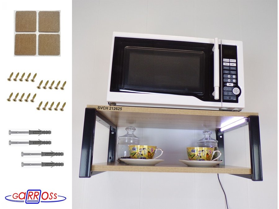 Кронштейн для микроволновки с подсветкой, 21см черный "SVCH 212625" две полки 35х54см, дуб сонома