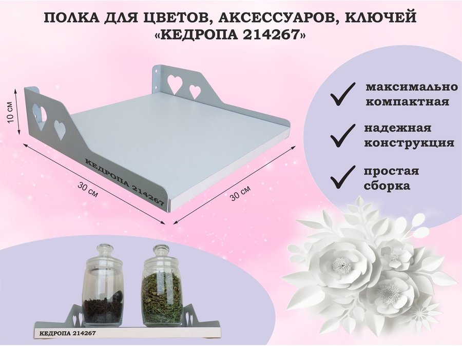 - Полка имеет надёжную конструкцию и выдержает нагрузку до 30 кг