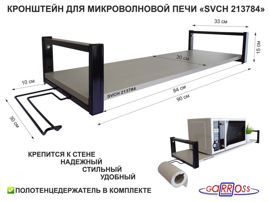Кронштейн для микроволновой печи, 15см серый "SVCH 213794" полка 90х30, венге с держателем полотенец