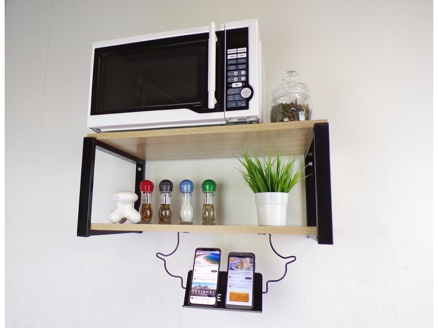 - Универсальная полка с держателем для телефона имеет лаконичный и стильный дизайн, идеально подойдет для любого интерьера и существенно сэкономит место на кухне, а также позволит просматривать любимые фильмы и сериалы не отрываясь от приготовления пищи.