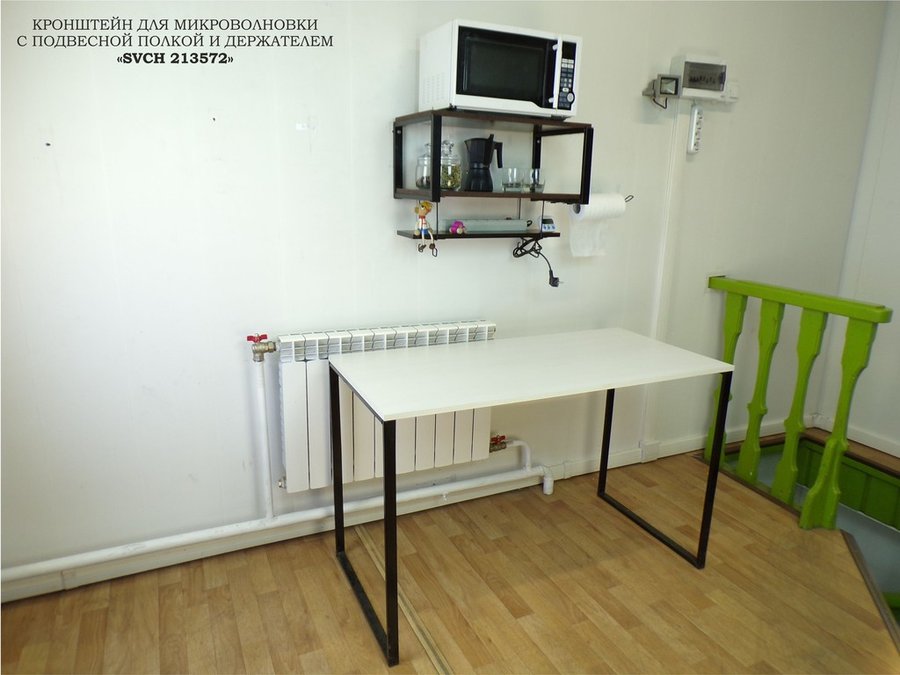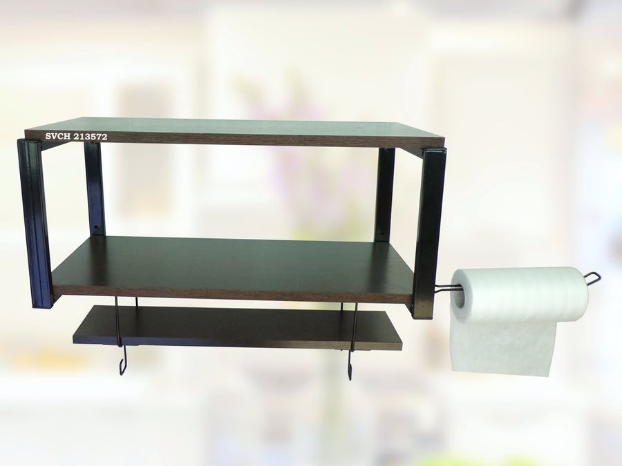 Полка для микроволновки с подвесной полкой, 27см, черный "SVCH 213572" 60х30см, венге, держатель