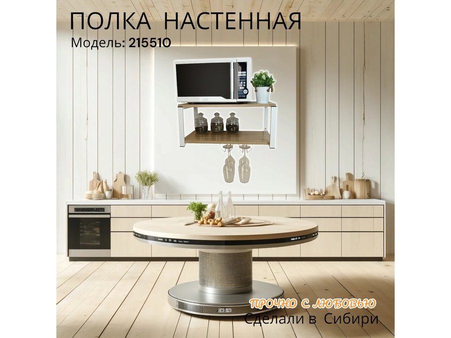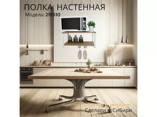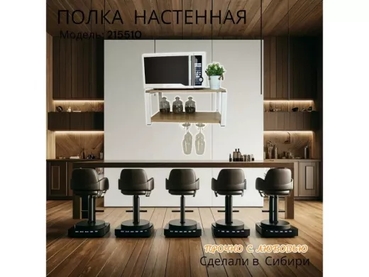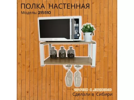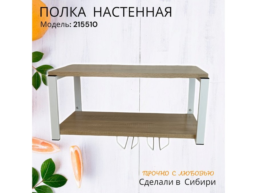 Полка c двумя бокалодержателем для микроволновки "SVCH 215510" 60х30см, белая, дуб сонома