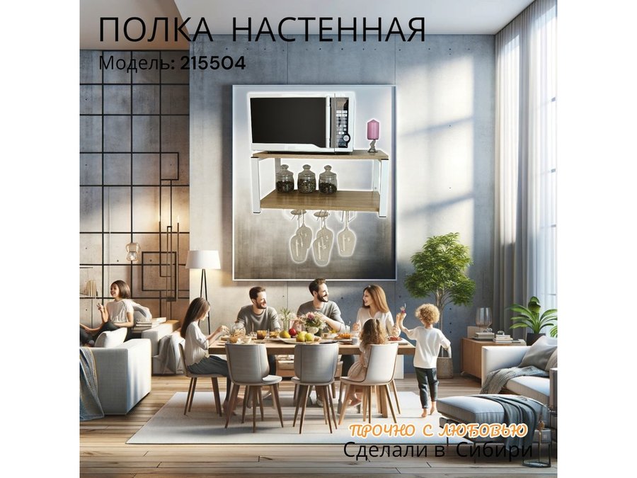 Полка надежно крепится к стене при помощи анкеров или шурупов с дюбелями, на ней можно разместить микроволновую печь, кухонную технику, посуду, специи