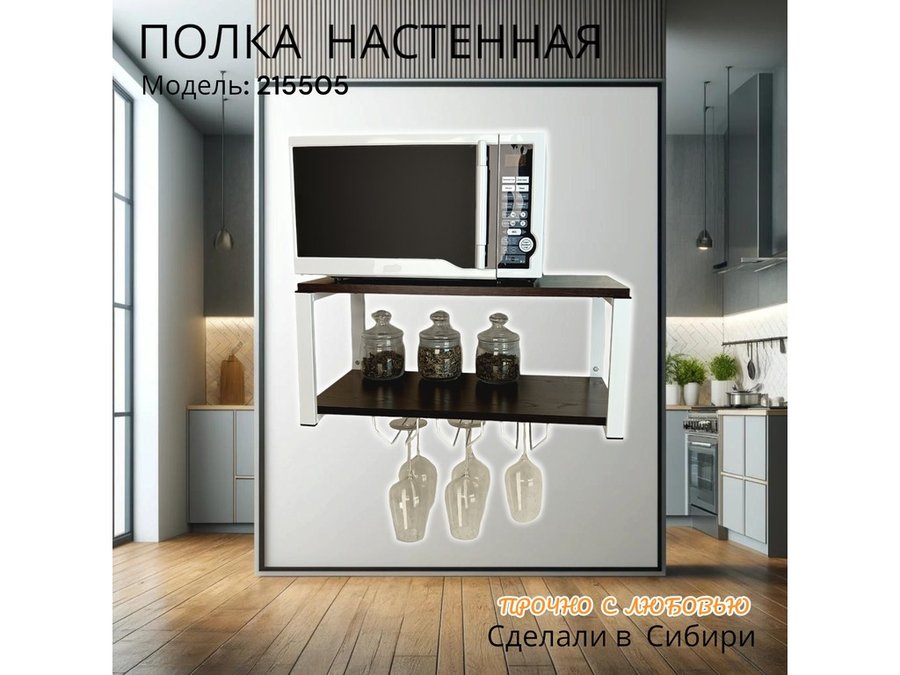 Полка c тремя бокалодержателями для микроволновки "SVCH 215505" 60х30см, белая, венге