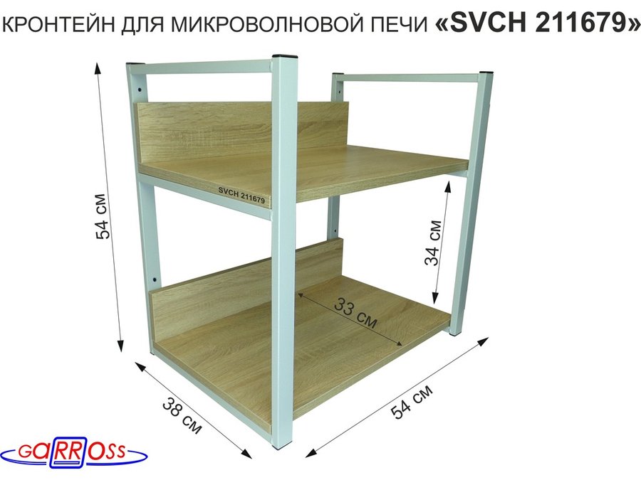 Кронштейн для микроволновки, 54см серый "SVCH 211679" две полки 35х54см со стенками, дуб сонома