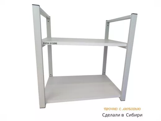 - Каркас изделия выполнен из высокопрочного металла. Полка изготовлена из ламинированного ДСП