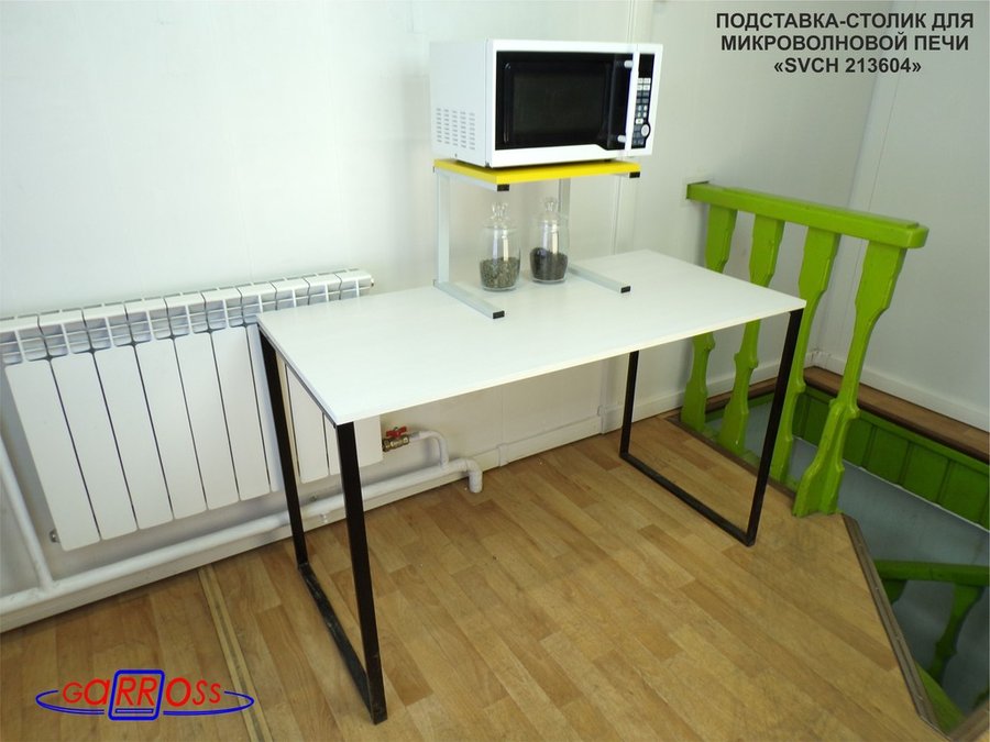 Универсальная подставка для микроволновой печи позволяет эффективно использовать место на столе.