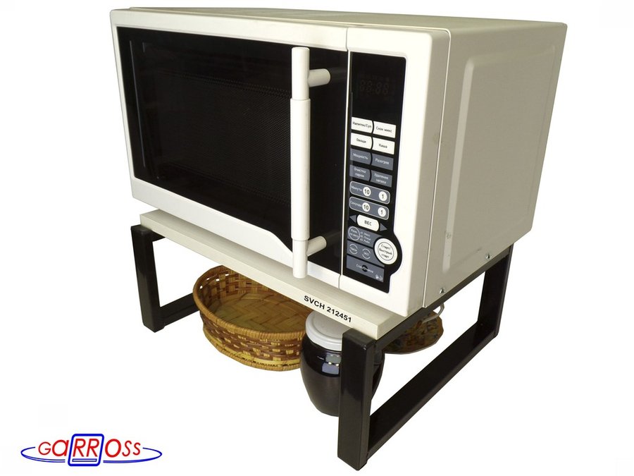 - Универсальная подставка для микровоновой печи позволяет эффективно использовать место на столе.