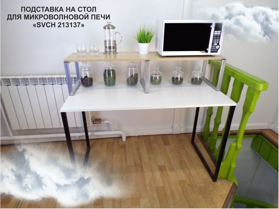 Подставка на стол для микроволновой печи, высота 27см, серебр "SVCH 213137" полка 120х30см, дуб соно
