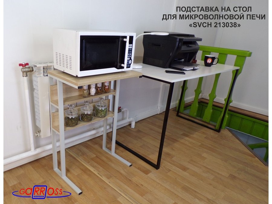 Столик для микроволновой печи позволяет эффективно использовать место на кухне. Важно отметить, что столик занимает немного пространства, поэтому ему найдётся место даже в самой малогабаритной квартире или офисе. Столик, в стиле Лофт, может быть использован в качестве подставки для цветов и книг, места для работы, места для хранения мелочей, в спальню для завтра, как обеденный стол для перекуса, для офиса и отдыха на даче. Для кабинета/спальни/гостиной. Стол универсален и будет отлично смотреться и в интерьере уютного дома, и в интерьере делового офиса, и в салоне красоты. Столик, без труда, можно перенести в любое место.