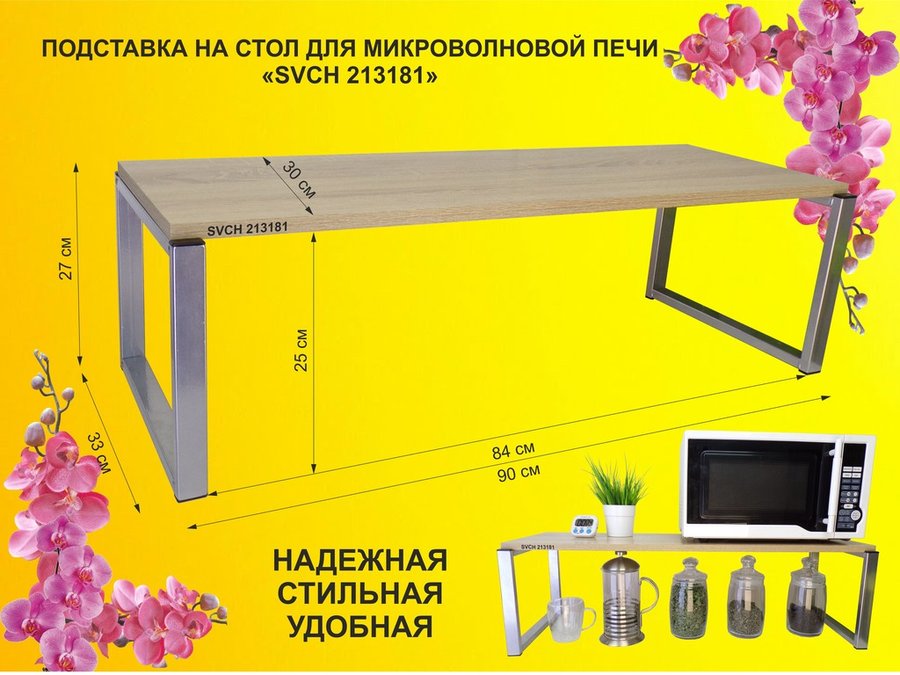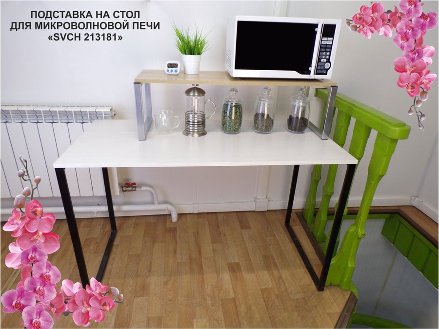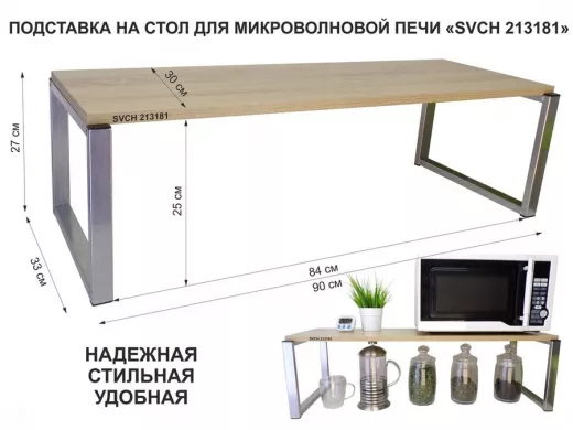Подставка на стол для микроволновой печи, высота 27см, сереб "SVCH 213181" полка 90х30см, дуб сонома