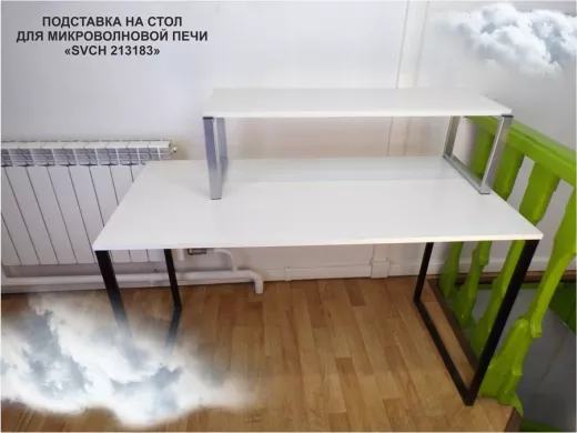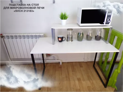 Подставка на стол для микроволновой печи, высота 27см, сереб "SVCH 213183" полка 90х30см, сосна