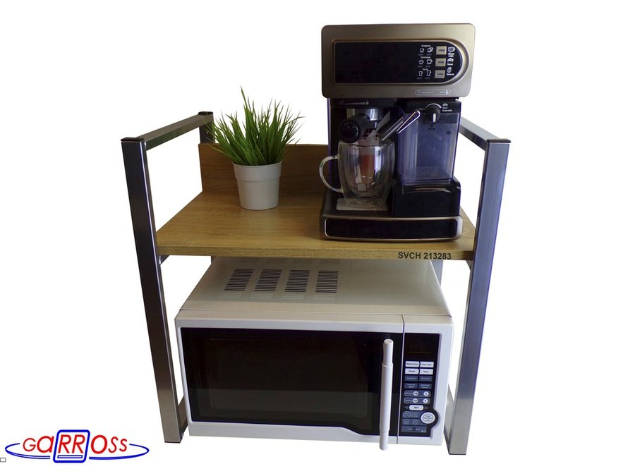 Универсальная подставка для бытовой техники (микроволновой печи, кофемашины, тостера, электрического чайника и др) позволяет эффективно использовать место на столе.