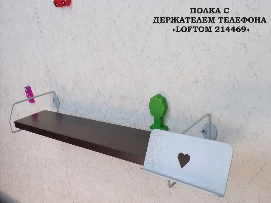 Полка с держателем телефона, серый "LOFTOM 214469" полка 54х10 см, венге