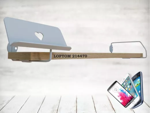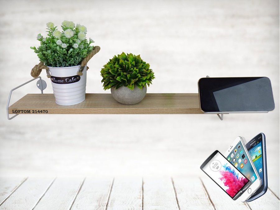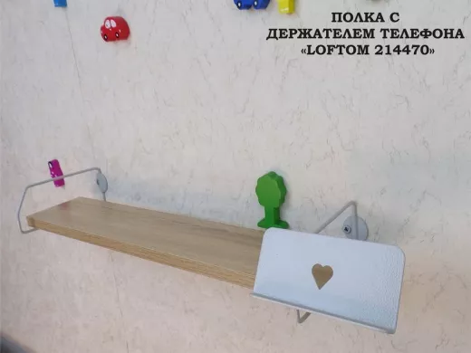 Полка с держателем телефона, серый "LOFTOM 214470" полка 54х10 см, дуб сонома