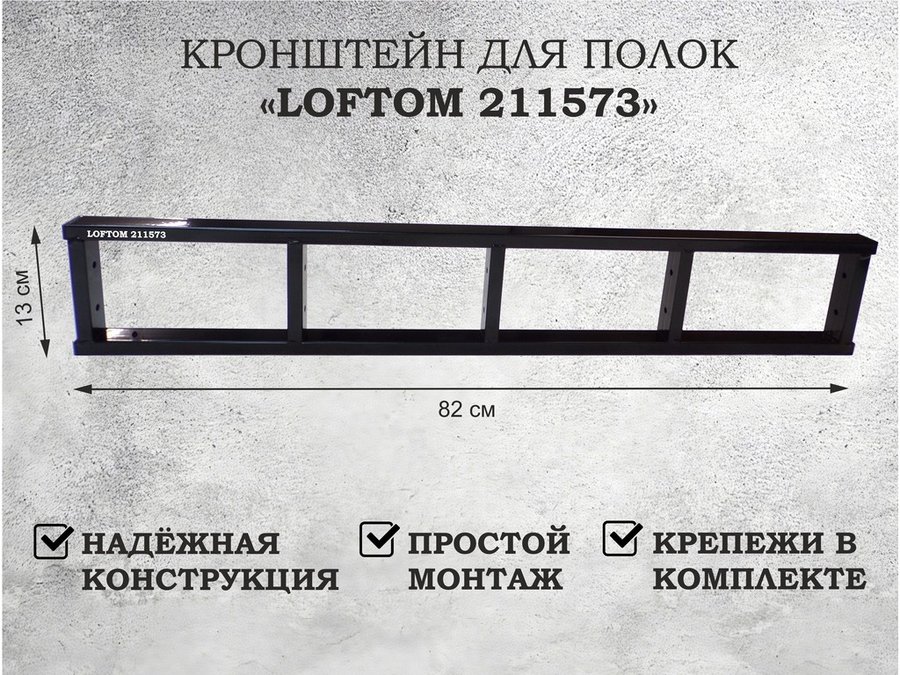Кронштейн для полок, высота 54см, для столешниц, раковин, вылет 38см, 10 отв. чёрный "LOFTOM 212634"