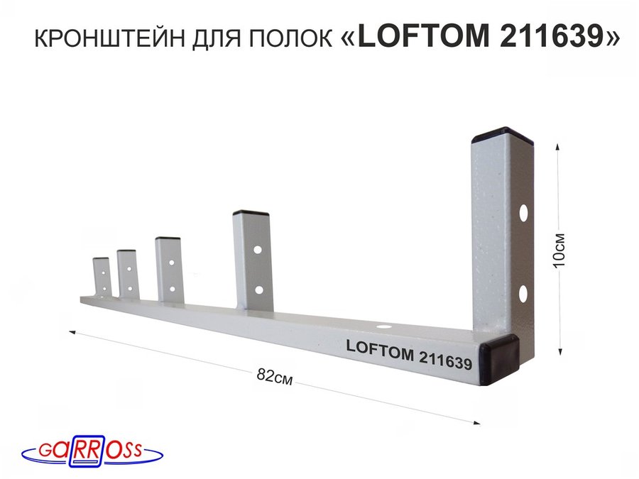 Кронштейн для полок, высота 36см, для столешниц, раковин, вылет 38см, 10 отв., серый "LOFTOM 212149"