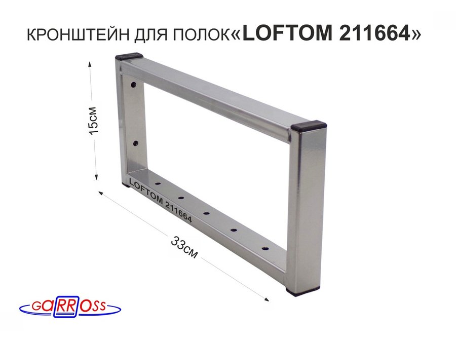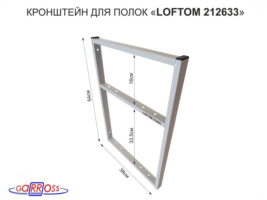 Кронштейн для полок, высота 25см, столешниц, раковин, вылет 33см, 12 отв серебристый "LOFTOM 204853"