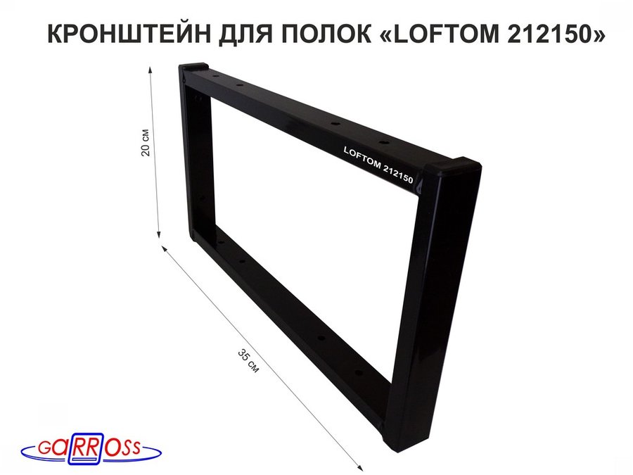 Кронштейн для полок, высота 20см, для столешниц, раковин, вылет 38см, 10отв., чёрный "LOFTOM 212150"