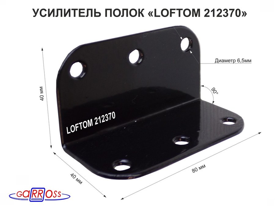 В корзину Купить в 1 клик Уголок крепёжный стальной "LOFTOM-212370" толщина 2мм, 80х40х40 мм с 6 отверстиями, чёрный