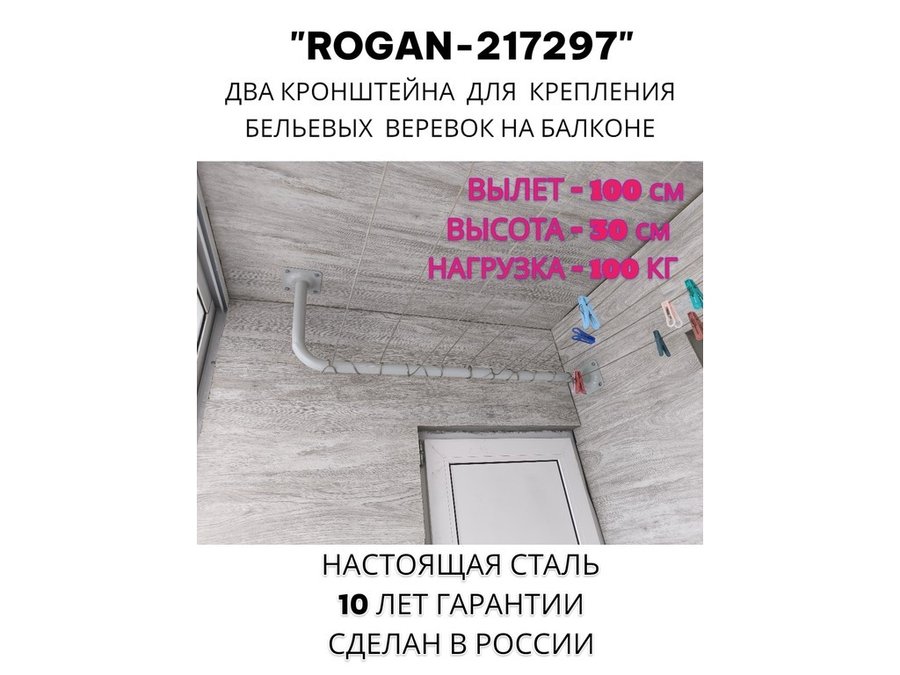 - Длинна кронштейна позволяет протянуть необходимое количество бельевой веревки, для увеличения площади сушки вещей.