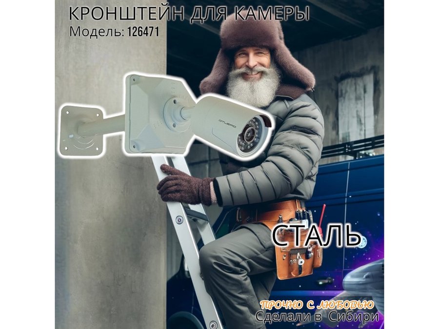 - Данный кронштейн позволяет закрепить видеокамеру с гермобоксом и различные конструкции (коробки, корпуса, щиты) на стене, потолке или к полу.