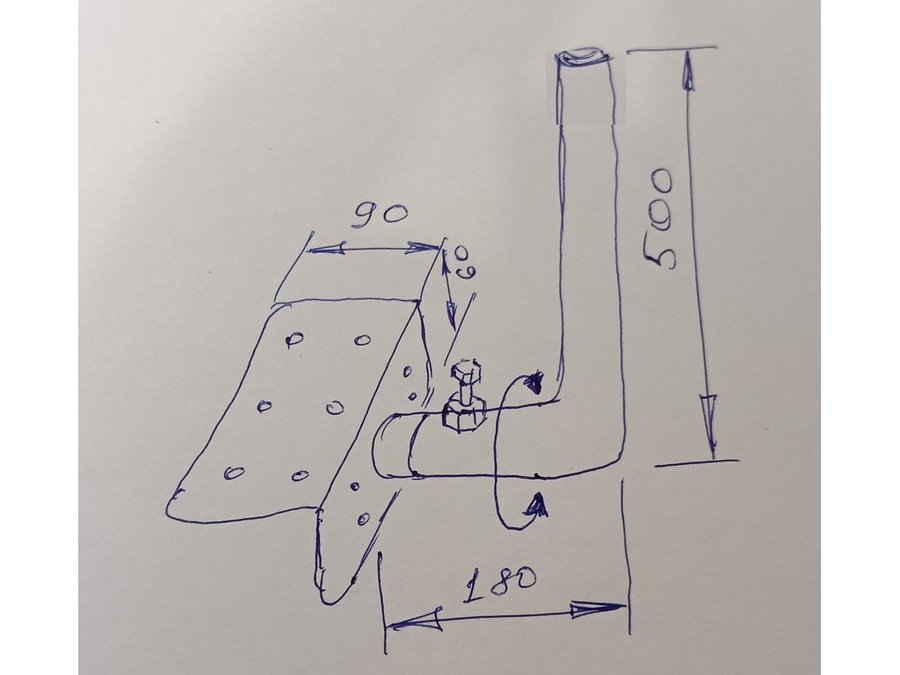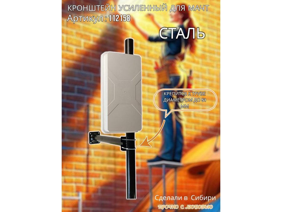 Кронштейн усиленный для мачт, вылет 0,5м "ВЫННОС-500BK-V2-216208" черный с 1отв.25мм для гофры, 51мм
