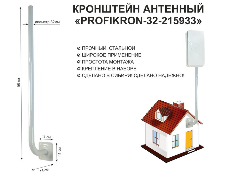 Кронштейн антенный "ХОМУТТО-100SL-83567" серебристый,крепление мачт до 51мм к стене,вылет 0,1м, 32мм