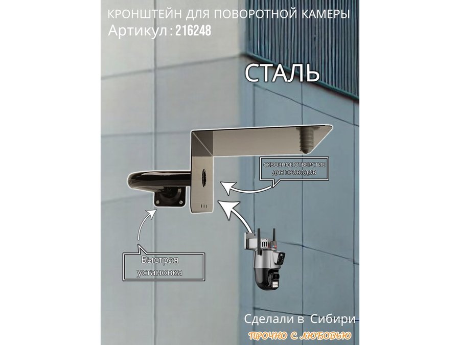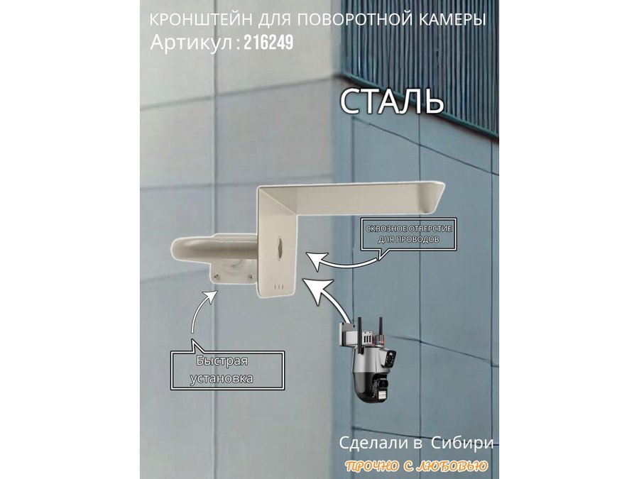 Кронштейн на столб для крепления гермобокса с видеокамерой, вылет 25 см "HIWOLL-216261" серый, сталь