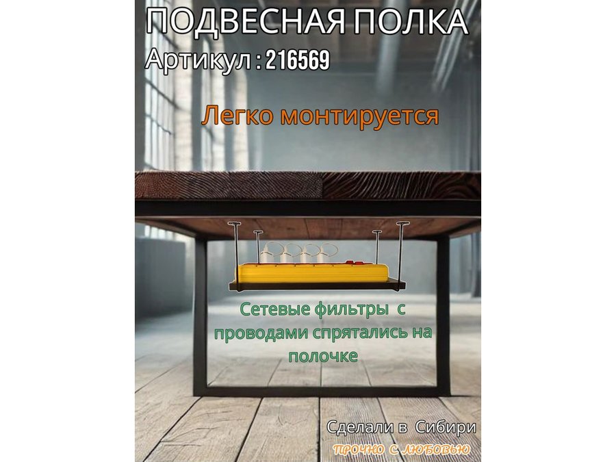 Полка подвесная для фильтра, роутера, проводов,10х60см "LOFTOM 216567"черные кронштейны, сосна выбел
