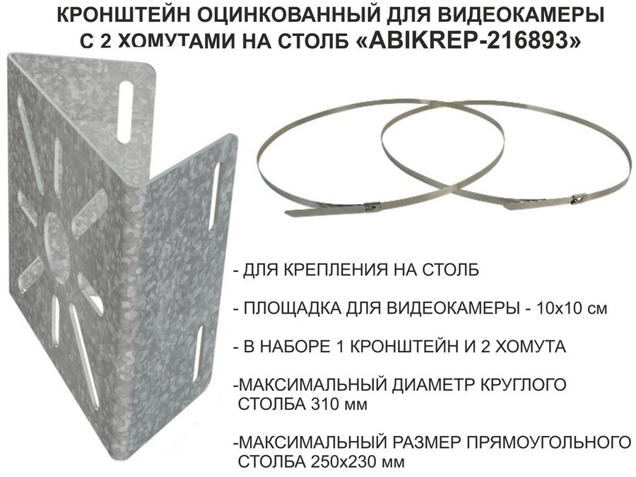 Кронштейн оцинкованный для камеры видеонаблюдения с двумя хомутами на столб "ABIKREP-216978" 24х12см