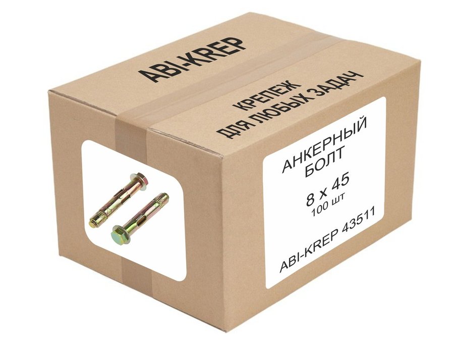 В корзину Купить в 1 клик Анкерный болт 8 x 45 100шт "ABI-KREP 43511" 2,15кг резьба М6, вес 1шт 21,5г