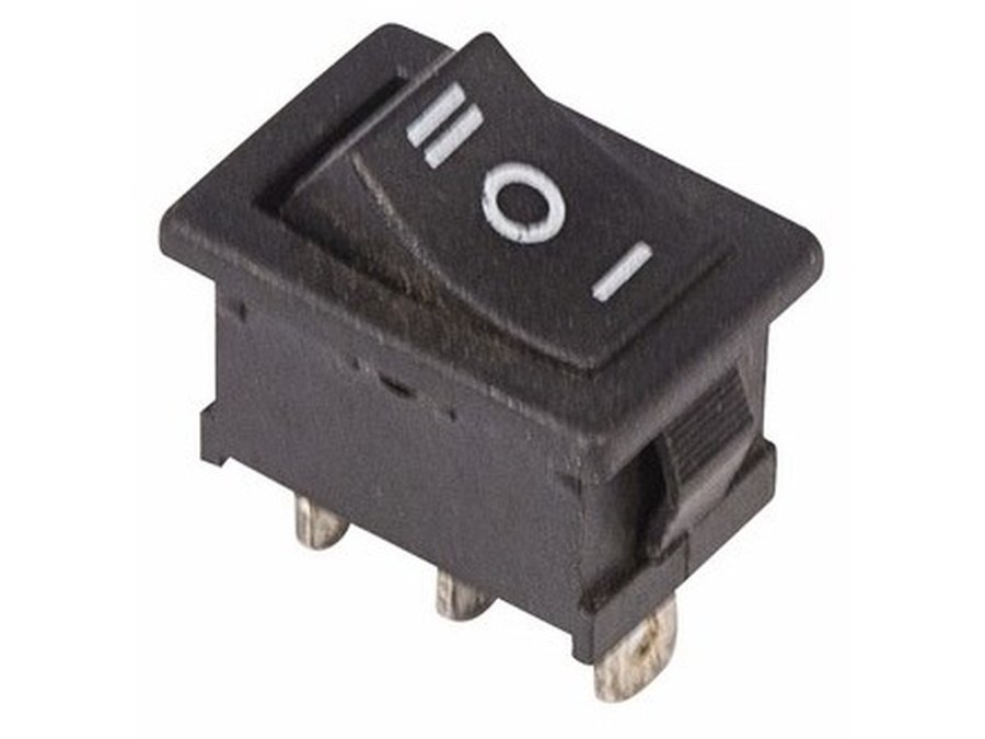 В корзину Купить в 1 клик Выключатель клавишный 250V 6А (3с) ON-OFF-ON черный с нейтралью Mini REXANT