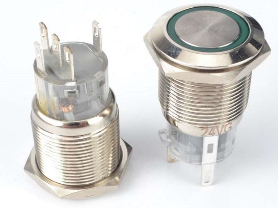В корзину Купить в 1 клик Кнопка без фиксации, металл 19мм., подсветка 220В.