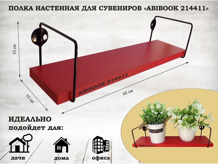 В корзину Купить в 1 клик Полка настенная для сувениров 10x 40 см красный ABIBOOK-214411