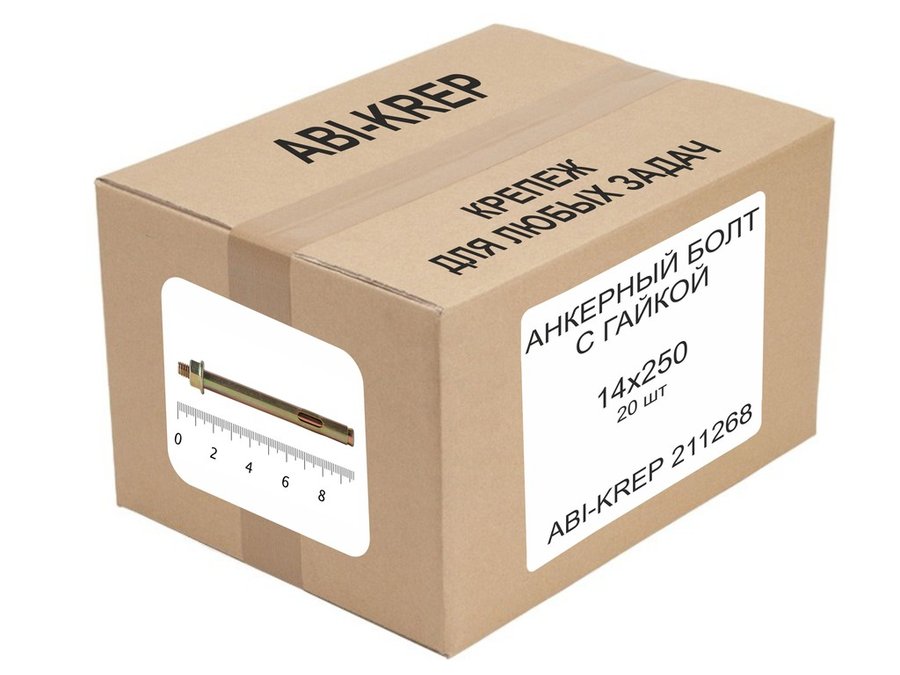 В корзину Купить в 1 клик Анкерный болт с гайкой 14х250 ( 20шт) "ABI-KREP 211268" 4,081кг резьба М10, вес 1шт 204,031г