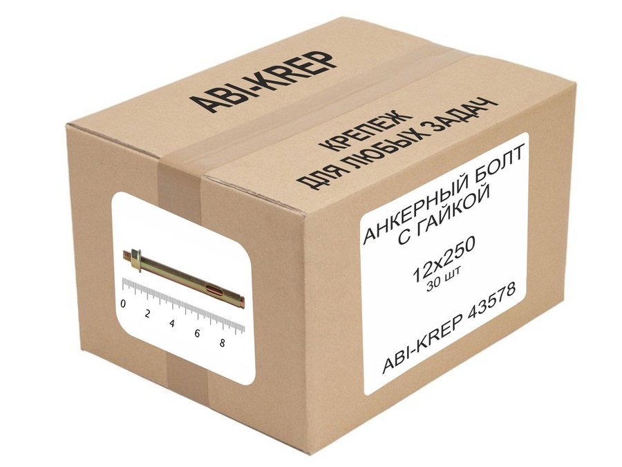 В корзину Купить в 1 клик Анкерный болт с гайкой 12х250 ( 30шт) "ABI-KREP 43578" 5,222кг резьба М10, вес 1шт 174,063г