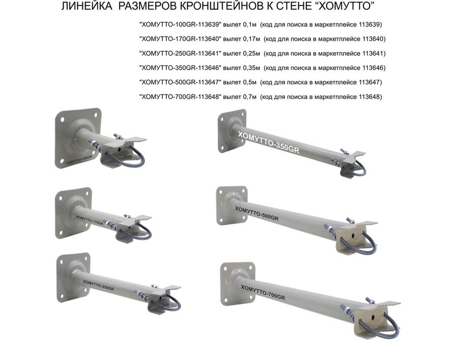 Кронштейн антенный "Хомутто-170-113640" серый, крепление мачт до 51мм к стене, вылет 0,17м, 32мм