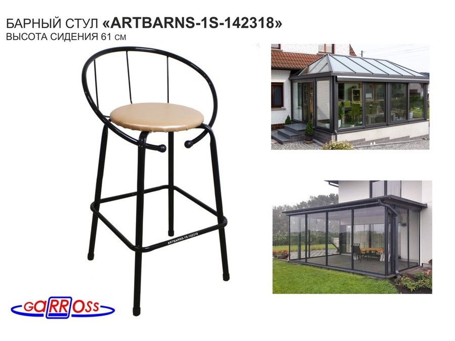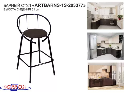 "ARTBARNS 1S-195193" cтул барный, табурет, спинка, высота 0,61метра, 22мм,серые ножки/Вольт 01 ткань