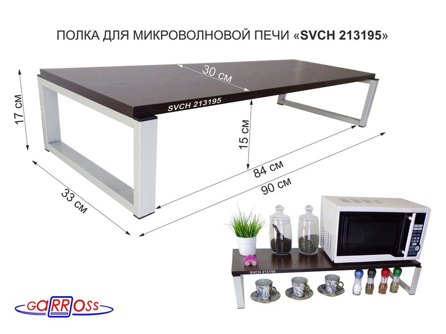 В корзину Купить в 1 клик Подставка на стол для микроволновой печи, высота 17см, серый "SVCH 213195" полка 90х30см, венге