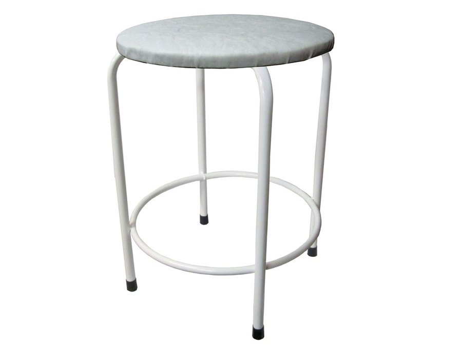 В корзину Купить в 1 клик Табурет с подставкой для ног и полкой "TABURETTO-20361" круглое сиденье, белый, серый, экокожа