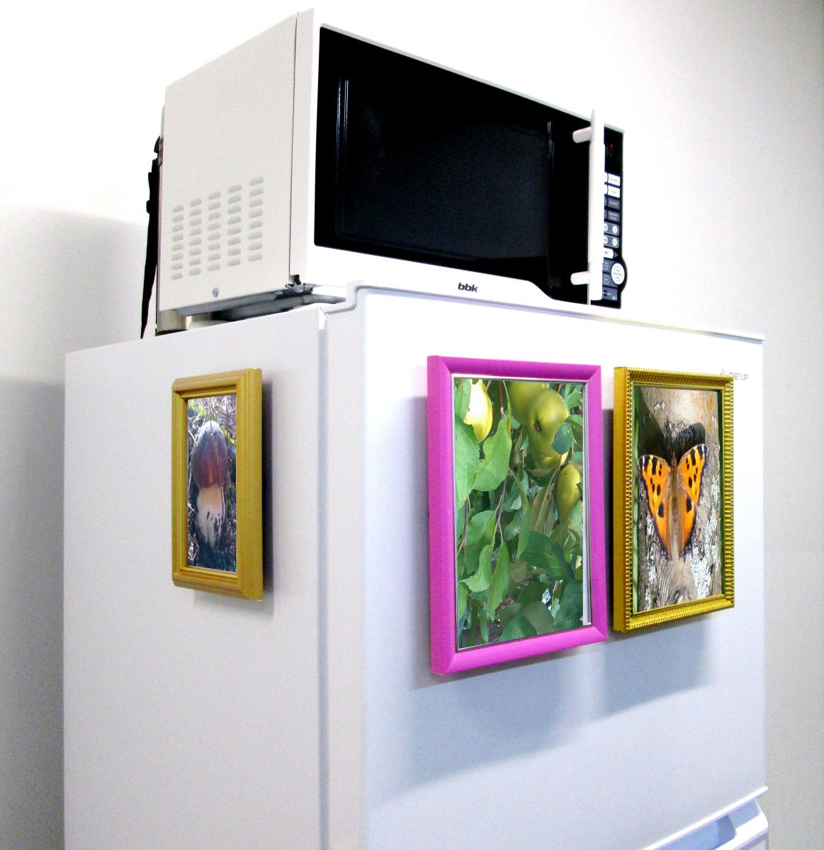 Фотографиями на холодильнике  можно освежить и украсить интерьер вашей кухни.