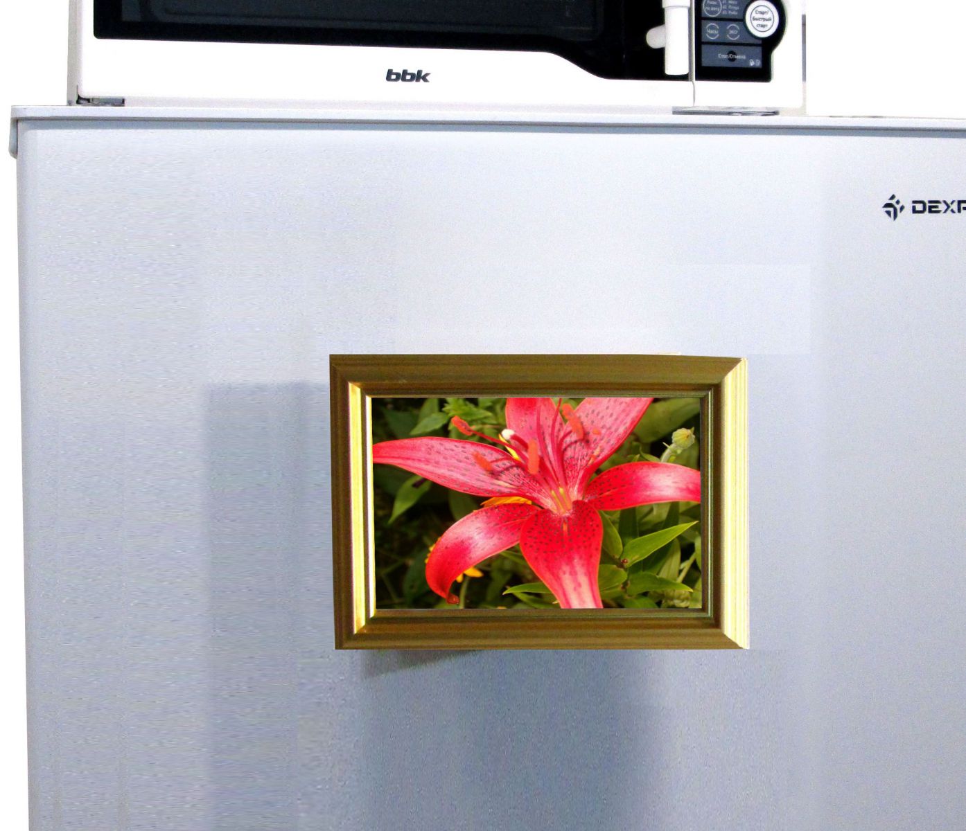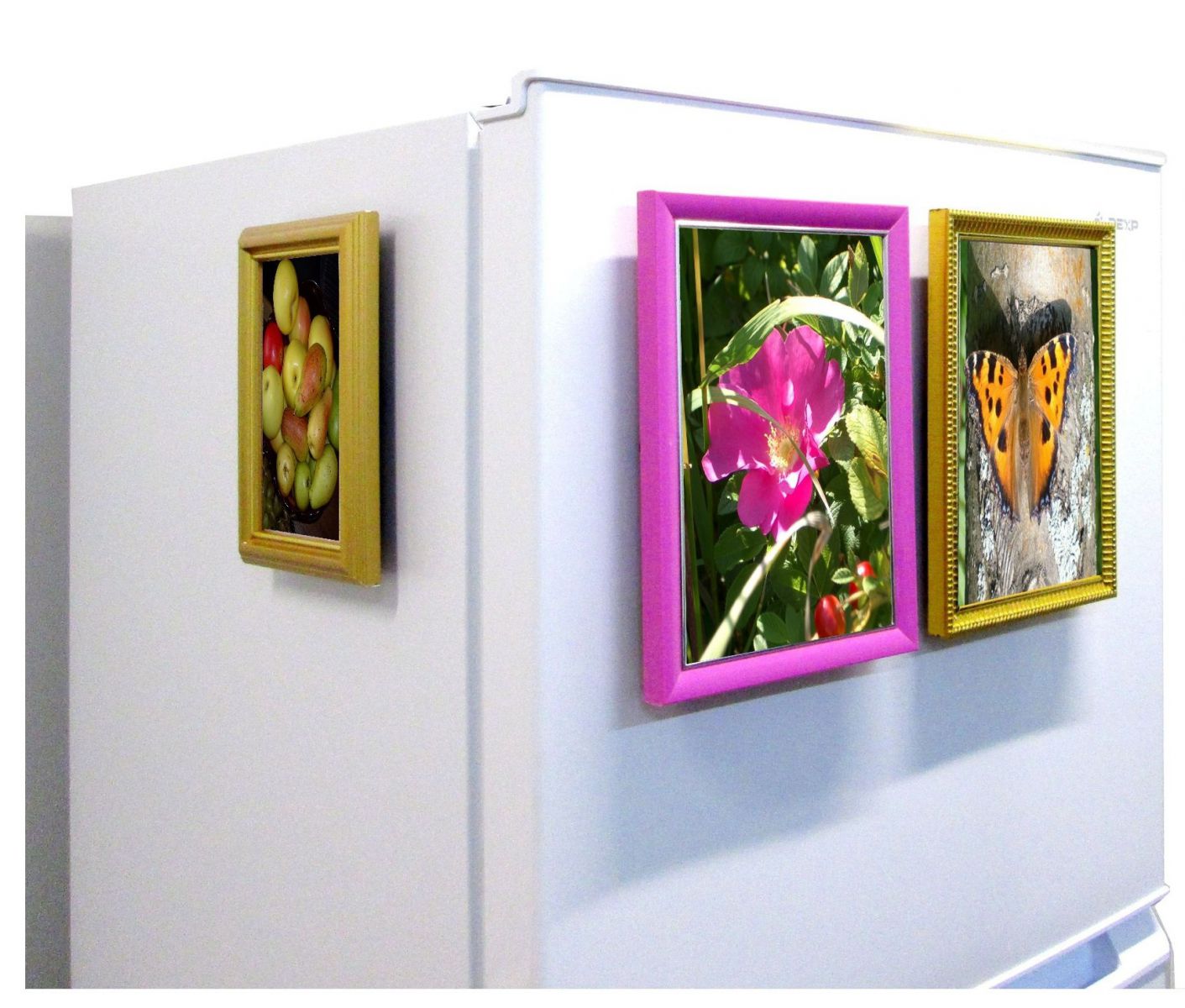С помощью магнитного крепления для рамок можно повесить фотографии на металлической поверхности, например, на холодильнике. Мощный магнит не позволяет скользить рамке по поверхности, что исключает появление царапин на краске.