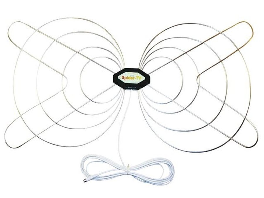 В корзину Купить в 1 клик "СпайдерПаутинка-7517" серебристая антенна цифровая телевизионная DVB-T2, МВ/ДМВ, кабель 5метров