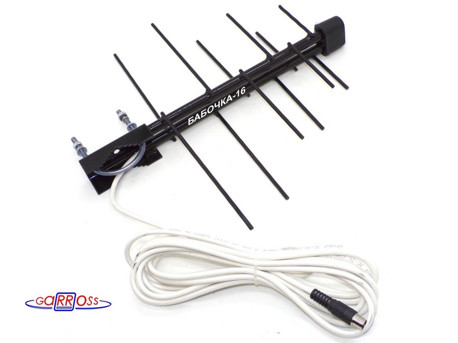 • "БАБОЧКА-16" ЧЁРНАЯ уличная телевизионная антенна предназначена для приема цифрового DVB-T2 и аналогового телевизионного сигнала ДМВ диапазона