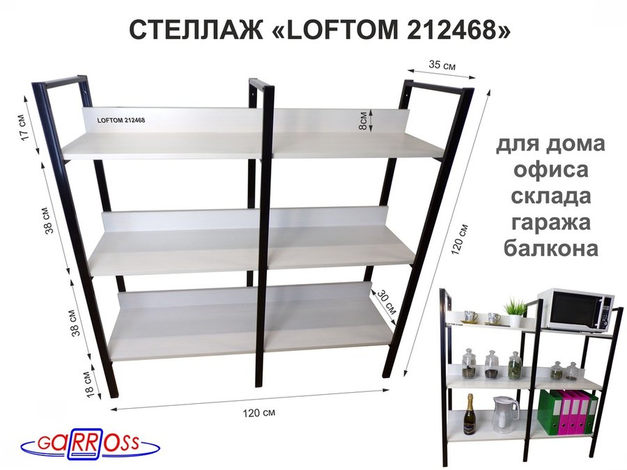 В корзину Купить в 1 клик Стеллаж 3 полки, чёрный "LOFTOM-212468" сосна, высота 120, ширина 33, длина 120 см, три каркаса